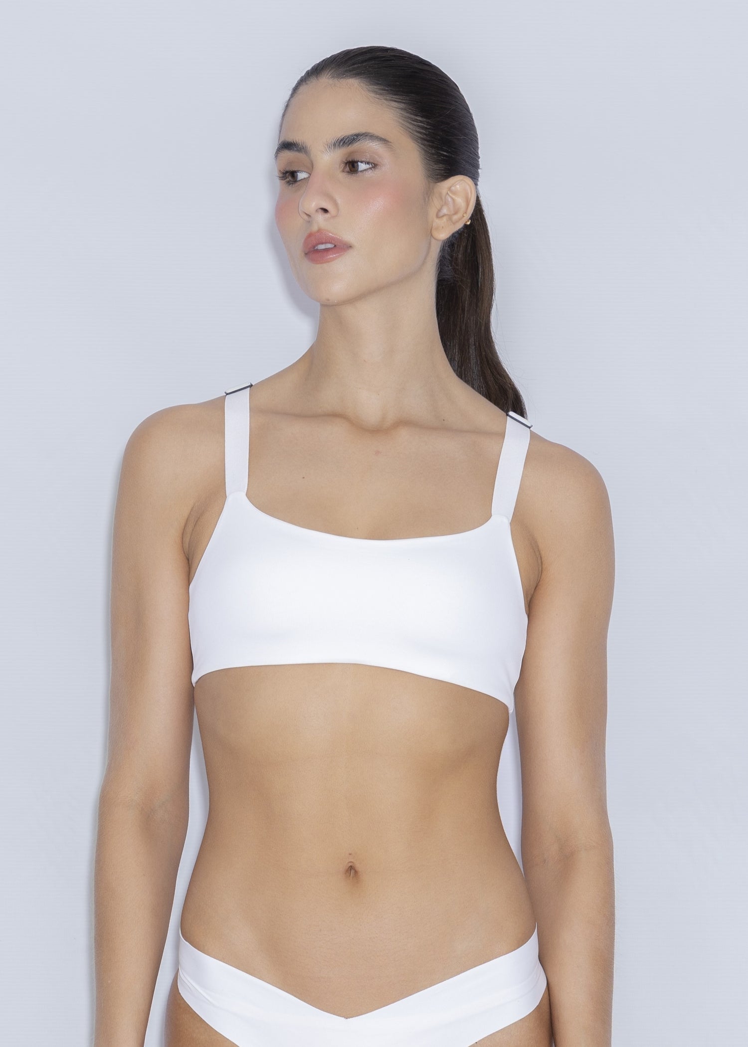 Top de escote recto, con cargaderas graduables y de doble tela con elástico en el contorno que te brindará soporte.